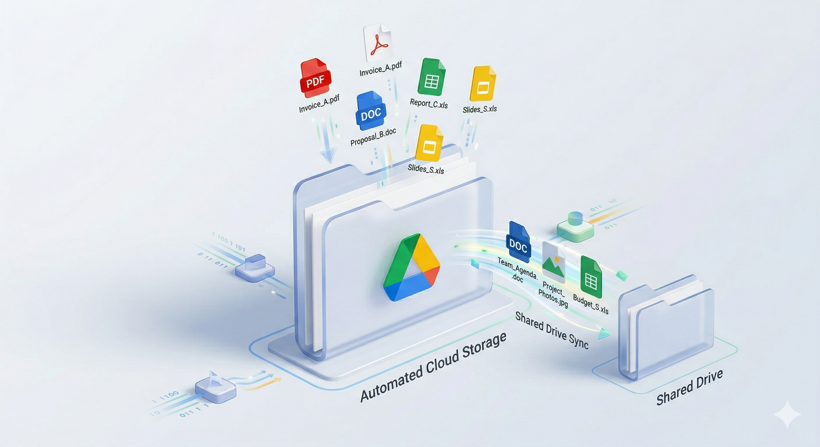 Auto-save documents in designated Drive folders or Shared Drives using dynamic naming conventions for effortless organization.